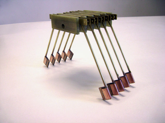 Produzimos cavaletes em aço inox com mola de pressão constante para porta escovas. A grande vantagem da mola de pressão constante é manter a mesma pressão na escova de grafite do inicio ao fim da vida útil da mesma.
